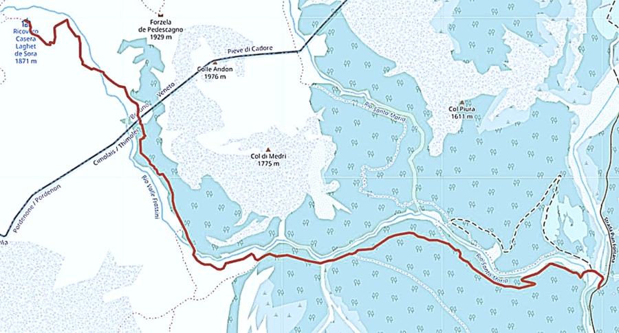Cartografia: Ed. Tabacco, scala 1:25.000, foglio n° 021 Dolomiti Friulane e d’oltre Piave